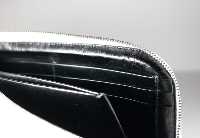 内側は飛び出しにくい高さのコインケースと