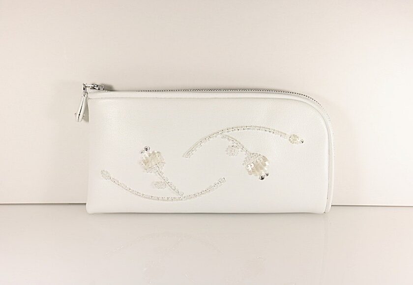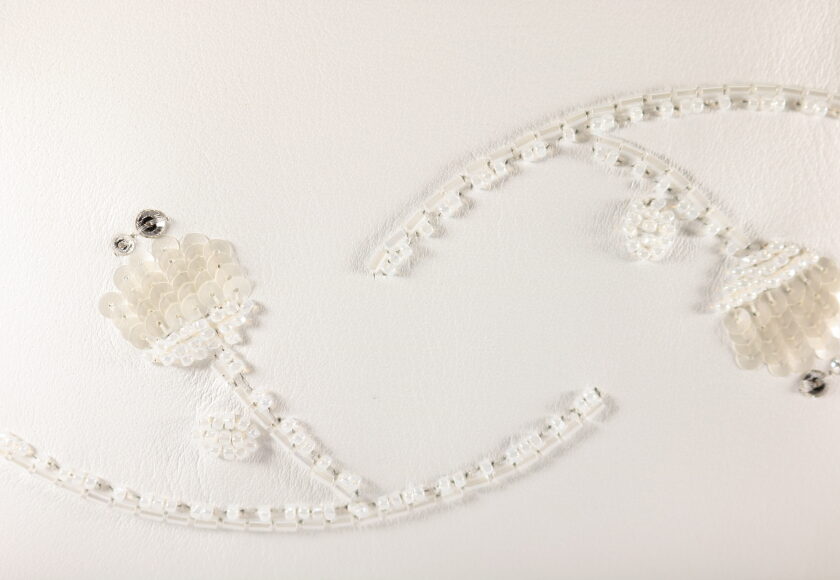 牛革にお花をイメージしたモチーフの刺繍。