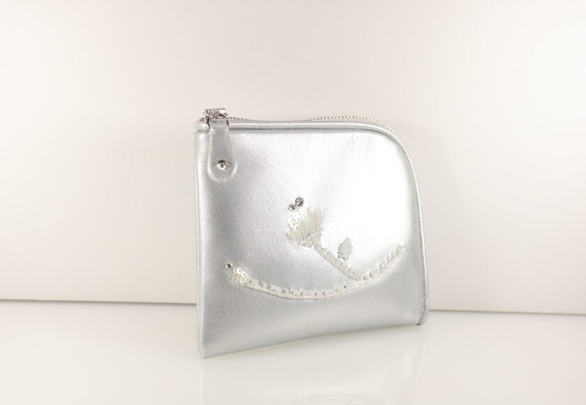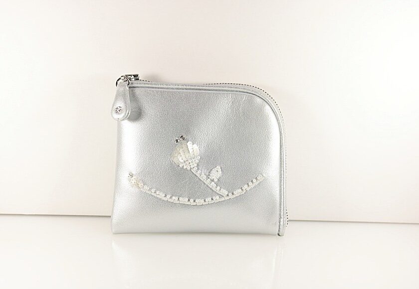 牛革にお花をイメージしたモチーフの刺繍。