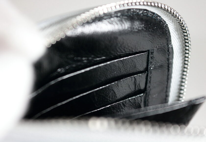 内側は飛び出しにくい高さのコインケースと